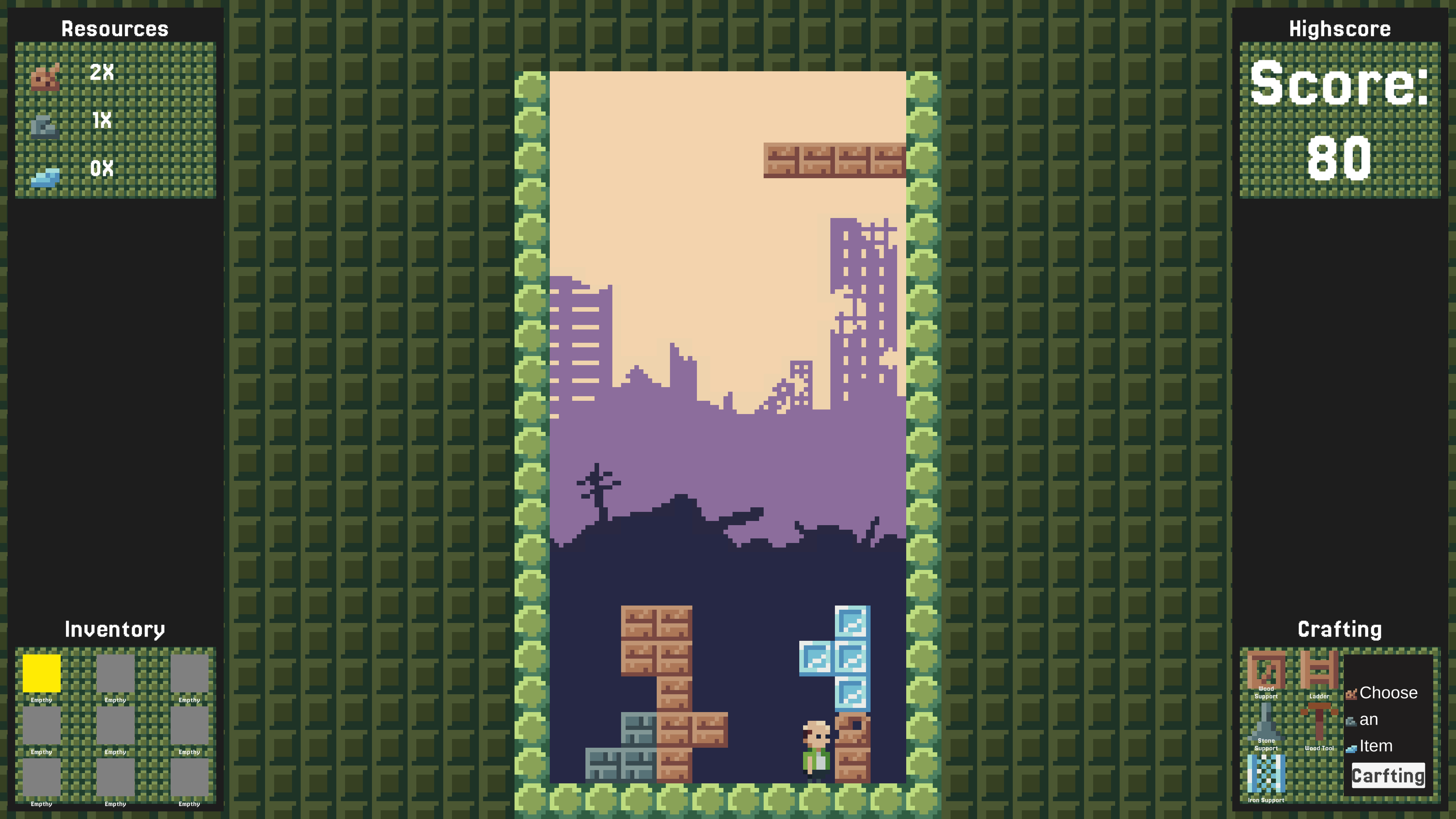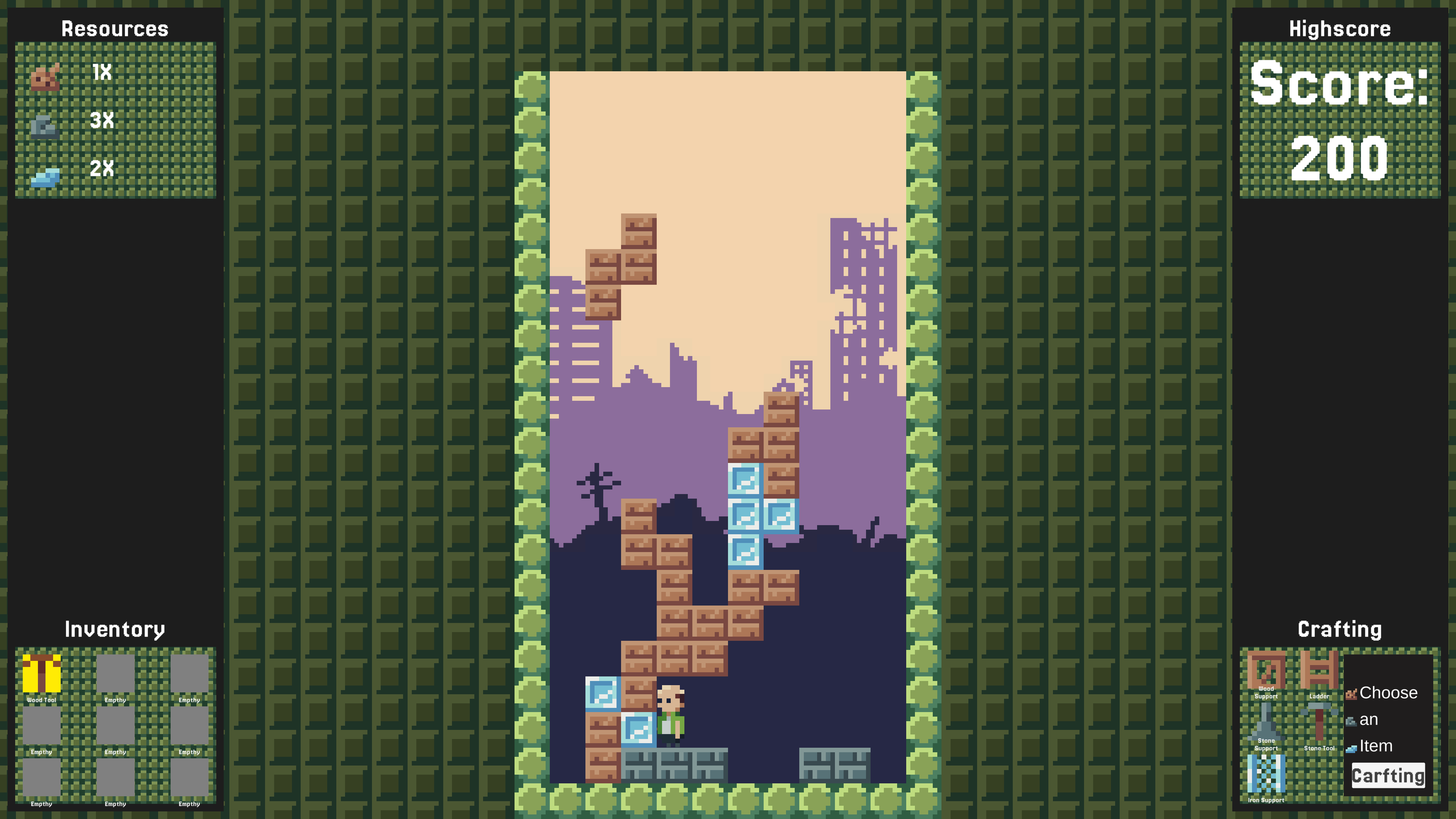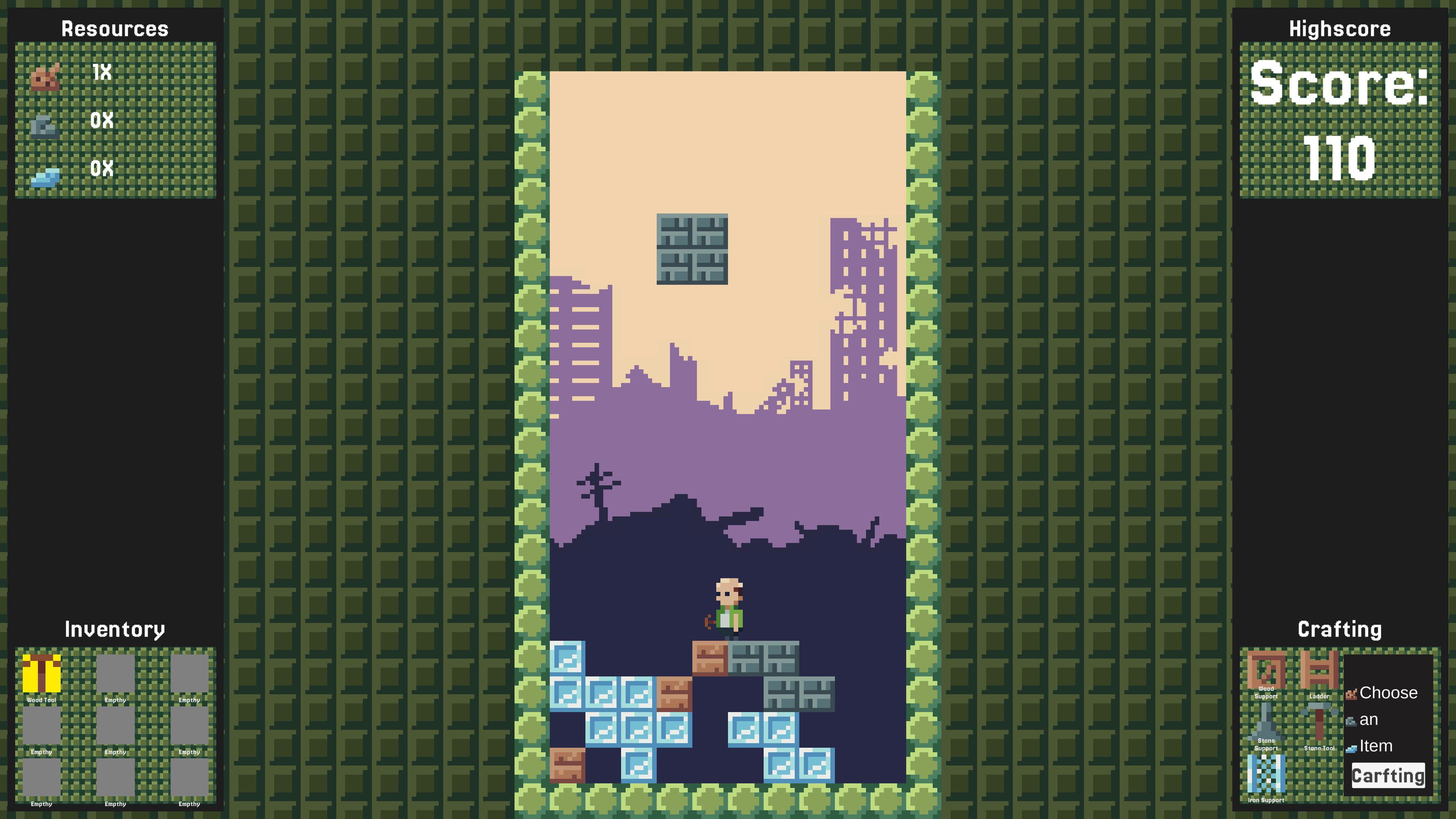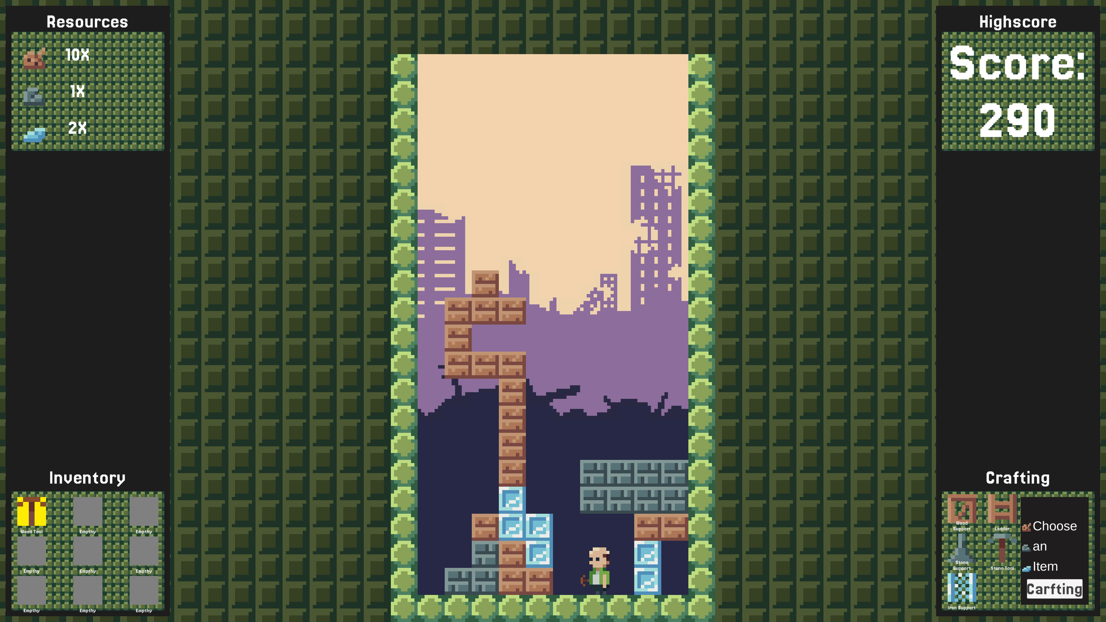In RipDrop the concept of Tetris is put upside down. Instead of controlling how the block falls, you can only controll how the block lands, by removing blocks through mining. You can craft usefull tools to help you in your endevur, just watch out to not get crushed undereath one of the falling blocks.